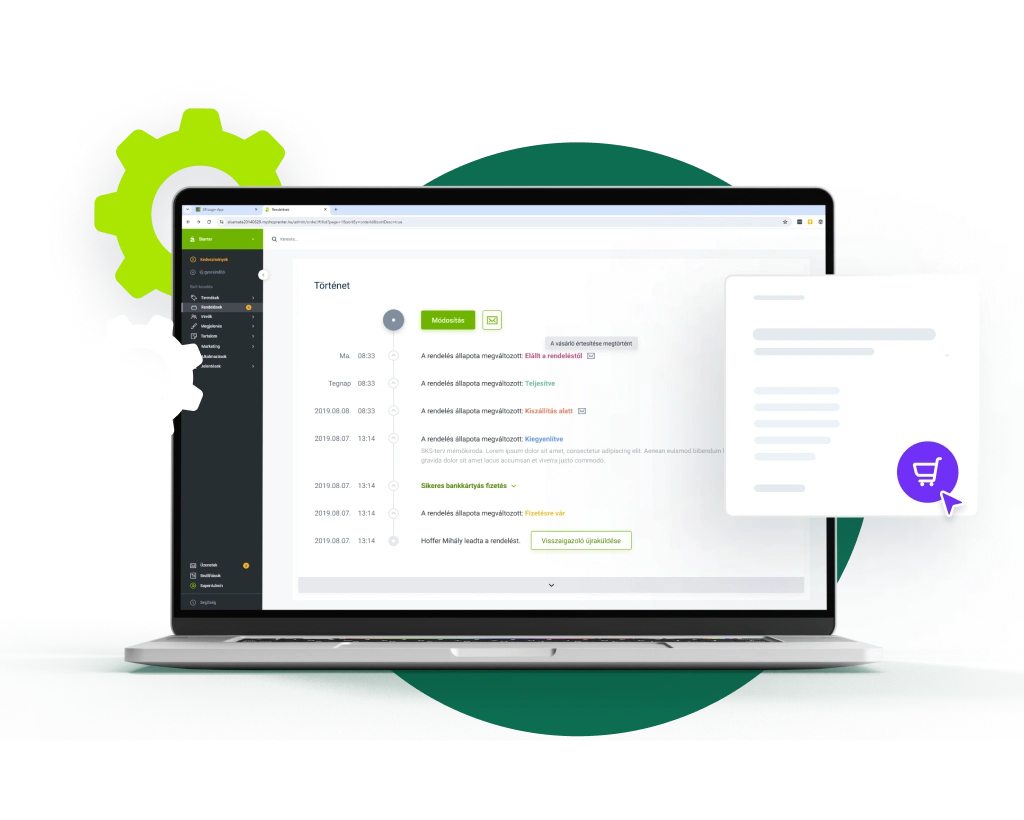 A Shoprenter admin felületén gyorsan telepíthető az alkalmazás. A megfelelő szolgáltatási csomag kiválasztása után egyszerűen aktiválható több fizetési mód is.
